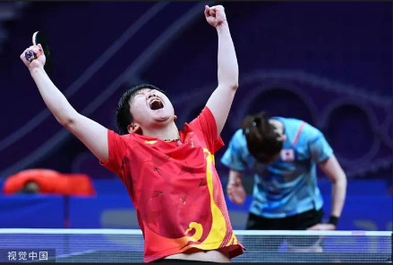 期间王艺迪不断地给自己打气呐喊,等最后一个小白球落地,终于取得胜利时,王艺迪再也忍不住仰天长啸。瞬间感觉此时此刻的王艺迪,像极了2020年东京奥运会女单半决赛,扛住团队巨大压力战胜世界第二伊藤美诚的孙颖莎;像极了2023年杭州亚运会女单总决赛,战胜了外协最强对手早田希娜的孙颖莎;像极了2024年韩国釜山世乒赛女团总决赛,为团队勇夺两大分的抗日英雄孙颖莎。