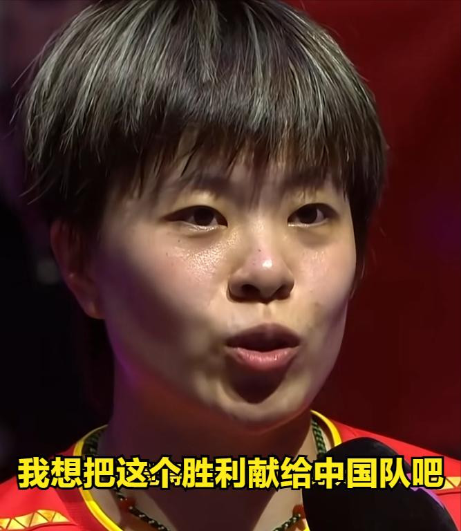 虽然只是一段简短的采访,但每个字都实实扎进了我们广大球迷们的内心,王艺迪开口的第一句话不是自己的庆祝,而是告诉我们大家,她想把这个胜利献给中国队!就像2020年东京奥运会女单半决赛时,孙颖莎战胜世界第二、刚刚夺得混双冠军的伊藤美诚后那样,孙颖莎面对广大球迷们没有说自己挺进半决赛的开心,而是哽咽着说出那句: